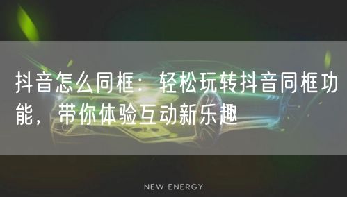 抖音同框功能为抖音用户带来了全新的互动体验,让你可以轻松与好友一起同框拍摄,分享创意和欢乐。通过本文的介绍,希望你已经了解了如何玩转抖音同框功能。现在就邀请你的好友一起参与,体验互动新乐趣吧!