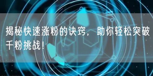 你是否正面临粉丝增长缓慢的挑战?想要轻松突破千粉大关,成为社交媒体上的网红达人吗?本文将为你揭秘快速涨粉的诀窍,助你实现目标!