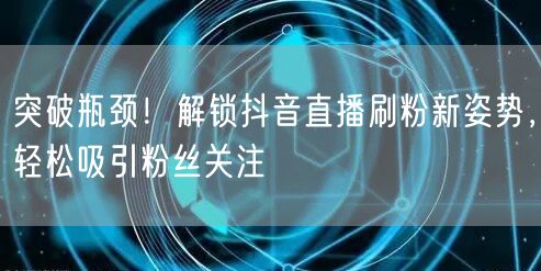 通过以上的方法和技巧,你可以突破抖音直播的瓶颈,解锁新的刷粉姿势,轻松吸引粉丝关注。记住,关键在于提供有价值的内容,与观众保持良好的互动关系,不断创新和尝试新的方法。