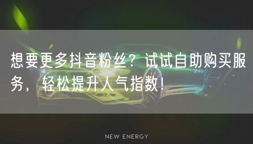 在抖音这个充满创意和活力的平台上,拥有众多的粉丝意味着更高的人气和更大的影响力。但是,如何快速增加抖音粉丝,提升人气指数呢?如果你正在寻找一种简单而有效的方式,那么尝试自助购买服务可能是一个不错的选择。