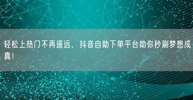 通过抖音自助下单平台,轻松上热门不再遥远。让我们一起秒刷流量,助力梦想成真,快速提升抖音账号影响力吧!