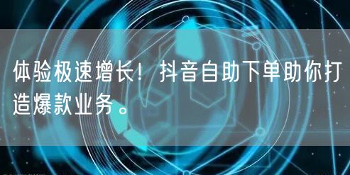 结语:抖音自助下单业务的出现,为众多企业和个人提供了一个全新的营销渠道。借助抖音平台,实现业务的极速增长已不再遥不可及。通过简单的操作、有效的推广和营销手段的结合,你将能够轻松打造爆款业务,获取更多的曝光和销售机会。