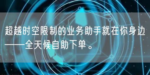 总之,超越时空限制的业务助手——全天候自助下单服务,让我们随时随地都能满足自己的业务需求。它简单易用、高效便捷、安全可靠,是我们生活中的得力助手。让我们拥抱这项新技术,享受它带来的美好生活吧!