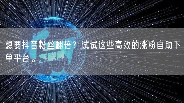 随着抖音平台的日益普及,越来越多的人开始在抖音上展示自己的才华和创意。在这个充满机遇和挑战的平台上,拥有众多的粉丝意味着更高的曝光率、更多的机会和更大的影响力。那么,如何快速涨粉,实现粉丝翻倍呢?尝试一些高效的涨粉自助下单平台或许是一个不错的选择。