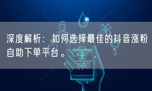 随着抖音平台的快速发展,越来越多的个人和企业希望通过抖音实现品牌宣传、产品推广等目标。而在这个过程中,粉丝数量成为衡量影响力的关键指标之一。因此,选择一家可靠的抖音涨粉自助下单平台至关重要。本文将深度解析如何选择最佳的抖音涨粉自助下单平台,帮助你在众多平台中挑选出最适合你的那一个。