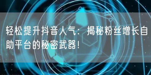 抖音已成为当下最热门的社交媒体平台之一,每个人都想在这里获得更多关注和人气。但是,如何轻松提升抖音人气呢?本文将为您揭秘粉丝增长自助平台的秘密武器,帮助您快速增加抖音粉丝和人气。