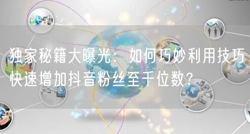 在数字化时代,抖音已成为广大网友交流互动的重要平台。如何快速增加抖音粉丝,提升个人或品牌的影响力,成为众多用户关注的焦点。本文将为你揭秘独家秘籍,教你如何巧妙利用技巧快速增加抖音粉丝至千位数。