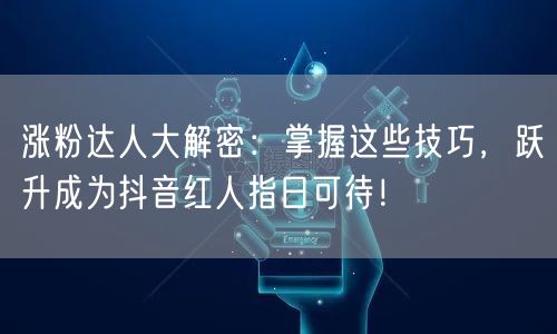 通过掌握这些技巧,你将有机会成为抖音红人。不断实践、调整策略,并持续改进,你将逐渐积累影响力,吸引更多粉丝关注。跃升成为涨粉达人,指日可待!
