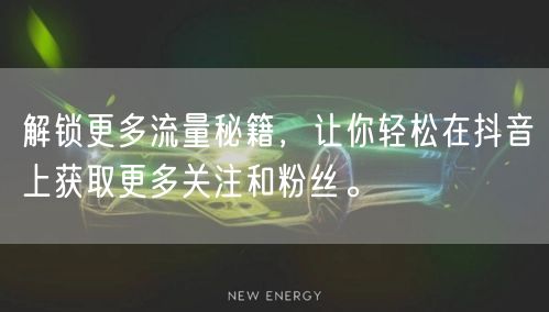 随着抖音平台的日益普及,越来越多的个人和企业开始利用抖音获取关注和粉丝增长。本文将为你揭示解锁更多流量的秘籍,让你轻松在抖音上获取更多关注和粉丝。