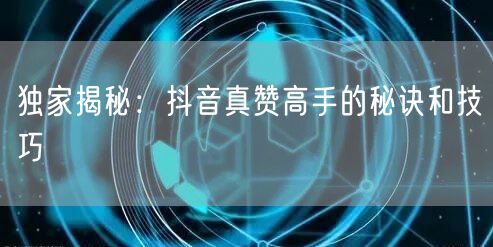 成为抖音真赞高手需要不断摸索、实践和创新。本文为您揭示了高手们的秘诀和技巧,希望能为您的抖音创作之路提供有益的参考。让我们在抖音的世界里,共同探索、共同进步。