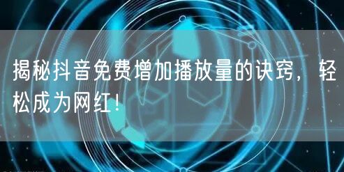 抖音作为当下最热门的短视频平台之一,吸引了众多内容创作者。如何在这个竞争激烈的平台上脱颖而出,成为每个抖音用户都关注的问题。本文将为你揭秘抖音免费增加播放量的诀窍,助你轻松成为网红!
