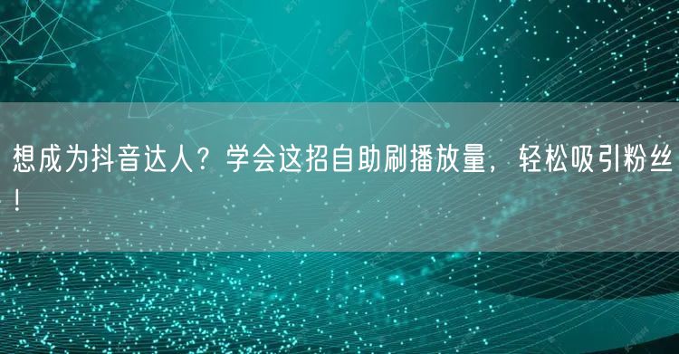 抖音已成为当下最热门的短视频平台之一,吸引了众多用户在此展示自我、分享创意。你是否也想成为抖音达人,吸引众多粉丝关注?本文将为你揭示一个有效的方法——自助刷播放量,轻松吸引粉丝!