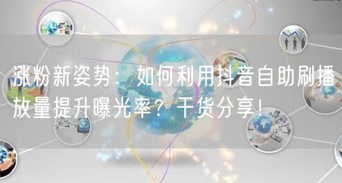 抖音作为当下最热门的短视频平台之一,吸引了众多内容创作者争相入驻。如何在众多作品中脱颖而出,吸引更多粉丝关注,成为每个内容创作者关注的焦点。本文将为你分享一种涨粉新姿势——利用抖音自助刷播放量提升曝光率,让你的作品获得更多关注和喜爱。