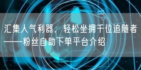 在如今这个注重粉丝经济的时代,如何有效地聚集人气,扩大影响力,成为许多人关注的焦点。今天,我要为大家介绍一款粉丝自助下单平台,通过该平台,用户可以轻松坐拥千位追随者,成为人气王者的秘诀就在于此。