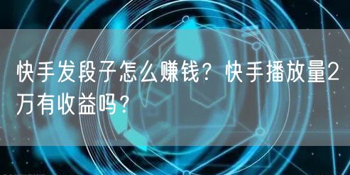 近年来,随着移动互联网的普及,短视频平台如快手等逐渐崭露头角。很多人通过快手平台发布段子,成功吸引了大量粉丝,实现了赚钱的梦想。那么,快手发段子怎么赚钱呢?