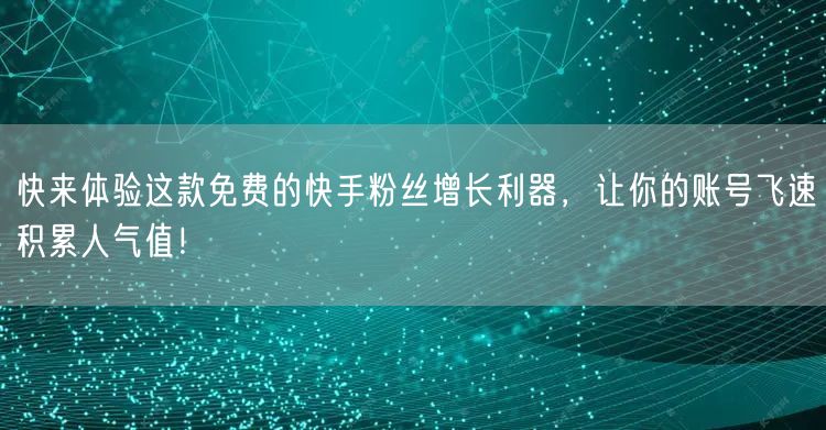 快来体验这款神奇的快手粉丝增长利器吧!它将为你的账号带来飞速的人气积累,让你在快手的舞台上更加耀眼。现在就开始体验,让我们一起成为快手红人!