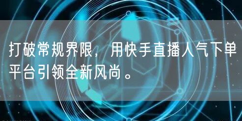 总之,快手直播人气下单平台的推出,打破了传统直播的界限,引领了全新的直播风尚。这个平台通过创新的技术和模式,为用户带来了全新的体验,提升了用户的观看乐趣。相信在未来,快手直播将继续不断创新,为用户带来更好的服务。