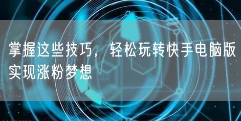 通过掌握以上技巧,你可以在快手电脑版上轻松涨粉,实现影响力提升。当然,除了技巧之外,还需要坚持不懈的努力和持续的创新。希望你在快手电脑版上展示自己的才华和创意,实现涨粉梦想!