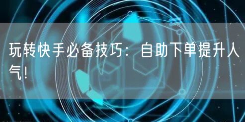 通过掌握玩转快手的必备技巧和自助下单提升人气的策略,你的快手账号将迅速崭露头角!快来尝试这些技巧,成为快手达人吧!