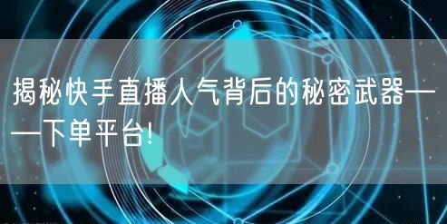 在数字化时代,短视频平台如快手已经成为了人们生活中不可或缺的一部分。其中,直播功能更是让众多主播和商家找到了与观众互动的新方式。但是,在这背后,究竟隐藏着怎样的秘密武器,使得某些直播间人气爆棚,订单不断呢?今天,我们就来揭秘这个秘密武器——下单平台。