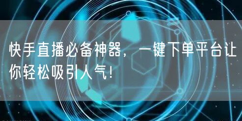 随着互联网的快速发展,直播行业持续火热,越来越多的人加入到直播的行列中,快手直播便是其中的佼佼者。想要在快手直播中脱颖而出,吸引更多人气,除了需要精彩的内容外,还需要一些辅助工具来提升直播效果。今天,就为大家介绍一款快手直播必备神器——一键下单平台,帮助你轻松吸引人气,提升直播营销效果!