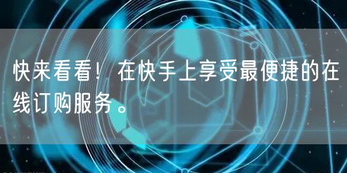 总之,快来看看!在快手上享受最便捷的在线订购服务吧!让购物变得更加轻松、便捷、高效,让你在繁忙的生活中也能享受到购物的乐趣。