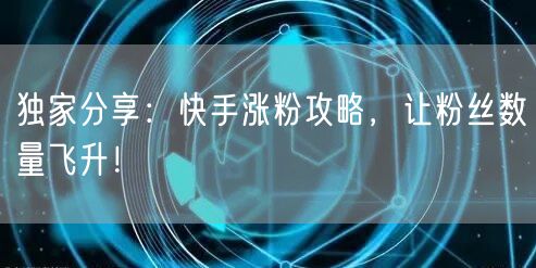 亲爱的朋友们,大家好!今天我来为大家分享一个独家秘诀——快手涨粉攻略。在这个信息爆炸的时代,拥有一个庞大的粉丝群体对于我们在社交媒体上的影响力至关重要。那么,如何快速有效地增加粉丝数量呢?接下来,请跟随我一起探索这个充满机遇的涨粉之旅!