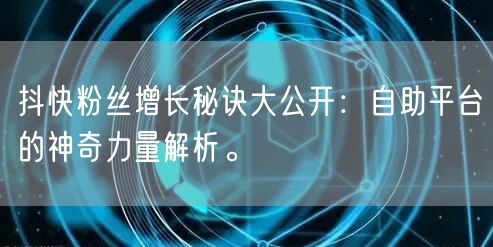 随着互联网的普及和短视频平台的崛起,抖快等社交媒体平台已经成为大众获取信息、娱乐消遣的重要渠道。在这样的时代背景下,如何借助自助平台的力量,实现粉丝快速增长,成为了众多自媒体人关注的焦点。本文将为你揭示抖快粉丝增长的秘诀,解析自助平台的神奇力量。