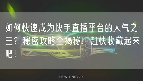 想要在快手直播平台迅速成为人气之王,单靠才华和颜值是远远不够的。在这竞争激烈的直播世界里,你需要掌握一些不为人知的秘密攻略。本文将为你揭开这些秘密,带你走进快手人气之王的殿堂!