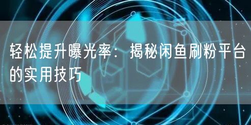 通过本文的介绍,相信你已经了解了闲鱼刷粉平台的实用技巧。在闲鱼上提升曝光率并非难事,只要你掌握了正确的方法和技巧,就能让你的店铺和产品脱颖而出,吸引更多潜在买家的关注。