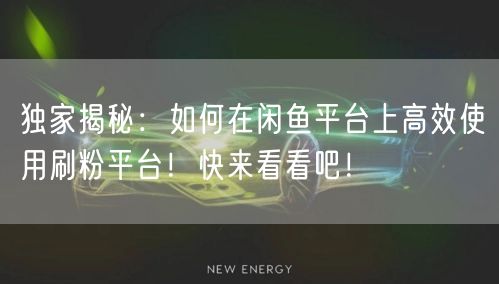 闲鱼平台作为当下热门的二手交易平台,吸引了大批卖家入驻。在这个竞争激烈的市场中,如何高效使用刷粉平台,提升个人账号影响力,成为每位卖家关注的焦点。本文将为您独家揭秘,如何在闲鱼平台上高效使用刷粉平台!