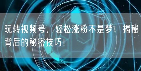 随着互联网的快速发展,短视频平台已经成为人们获取信息、娱乐消遣的重要渠道之一。越来越多的个人和企业开始通过视频号来扩大影响力,实现品牌宣传、产品推广等目标。但是,如何玩转视频号,轻松涨粉,成为了众多视频号运营者关注的焦点。本文将为你揭秘视频号的秘密技巧,让你轻松玩转短视频平台!