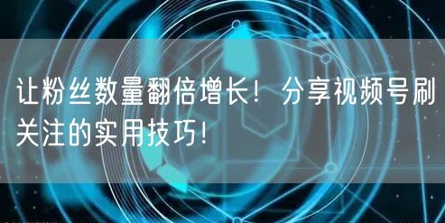 随着移动互联网的快速发展,越来越多的人开始投身于视频号的创作中。然而,如何吸引更多粉丝关注,让粉丝数量翻倍增长,成为了每个视频号运营者面临的共同挑战。本文将分享一些实用的视频号刷关注技巧,帮助您快速提升粉丝数量,提升视频号的曝光和影响力。