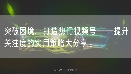 在当今数字化时代,短视频已成为人们获取信息、娱乐的重要方式之一。越来越多的人开始尝试通过视频号分享自己的见解和创意,但如何突破困境,打造热门视频号,吸引更多关注者呢?本文将从实用策略的角度为大家分享一些突破困境的方法和经验。