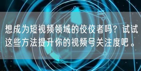 随着移动互联网的普及,短视频已成为大众获取信息、娱乐消遣的重要渠道之一。越来越多的用户通过视频号观看各类短视频内容,这也吸引了众多创作者涌入这一领域。如何在众多创作者中脱颖而出,成为短视频领域的佼佼者呢?本文将为你分享一些提升视频号关注度的方法。