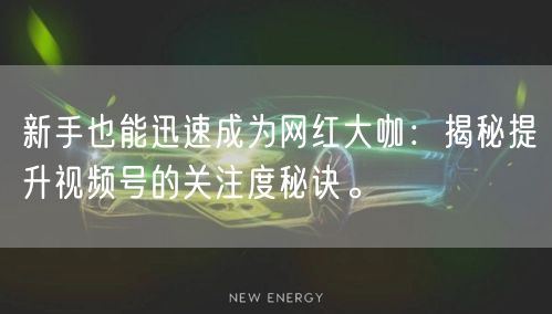 随着互联网的普及和社交媒体的兴起,越来越多的人希望通过视频号成为网红大咖。但新手往往面临关注度低、粉丝增长慢的困境。本文将为您揭秘提升视频号的关注度秘诀,助您快速成为网红大咖。