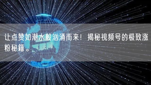 通过精准的内容创作和社交媒体优化策略,您的视频号将吸引更多粉丝关注,实现点赞如潮水般汹涌而来。掌握这些涨粉秘籍,轻松提升您的视频号的关注度和影响力。