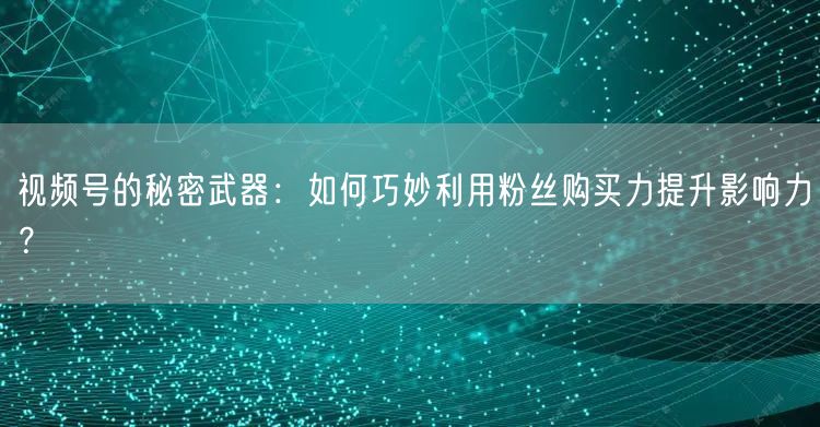 以上是为您创作的关于视频号的秘密武器:如何巧妙利用粉丝购买力提升影响力的文章内容。希望对您有所启发和帮助!