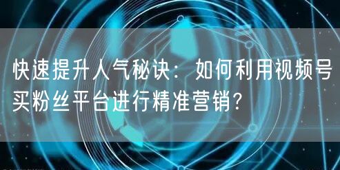 随着互联网的普及和社交媒体的飞速发展,视频号已成为人们获取信息、娱乐消遣的重要渠道之一。众多企业和个人纷纷入驻视频号,希望通过这一平台实现品牌宣传、粉丝积累和人脉拓展。本文将为你揭示快速提升人气秘诀,教你如何利用视频号买粉丝平台进行精准营销。