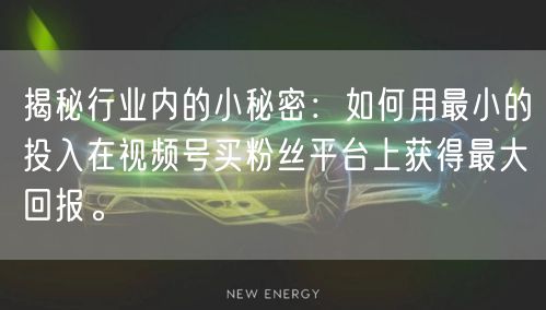通过本文的揭秘,相信您已经了解了如何在视频号买粉丝平台上以最小投入获取最大回报的关键点。在竞争激烈的市场环境中,掌握行业内的小秘密,不断提升自己的运营技巧,才能在视频号平台上取得成功。