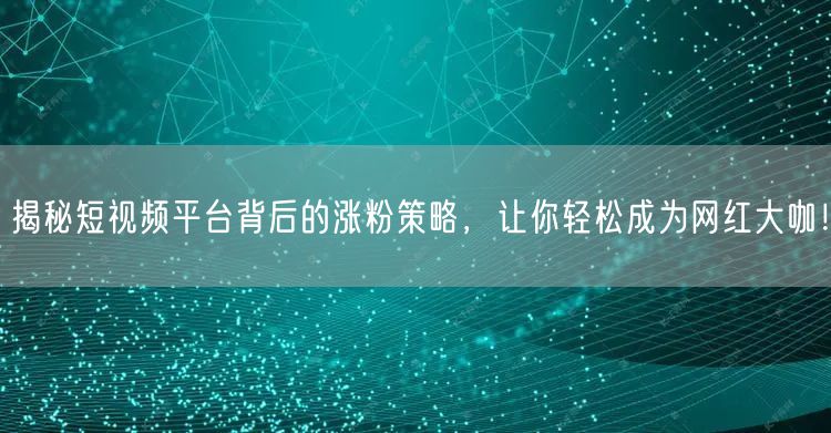 随着互联网的普及和智能手机的普及,短视频平台已经成为人们日常生活中不可或缺的一部分。越来越多的人希望通过短视频平台成为网红大咖,但如何吸引粉丝、实现涨粉却是一个难题。本文将深度解析短视频平台背后的涨粉策略,带你了解如何轻松成为网红大咖。