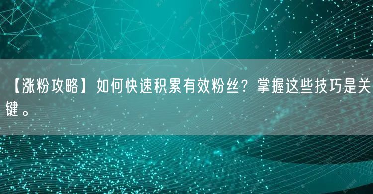 在当今社交媒体盛行的时代,积累有效粉丝对于个人品牌、企业推广以及影响力提升至关重要。本文将为你揭示涨粉攻略的秘诀,帮助你快速积累有效粉丝。掌握这些技巧,让你的社交媒体账号迎来质的飞跃。