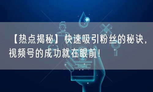 【热点揭秘】在数字化时代,社交媒体成为网红和流量明星的摇篮。本文将为你揭秘快速吸引粉丝的秘诀,助你轻松走上视频号的成功之路!快来关注我们的视频,发现成功的秘诀就在眼前!