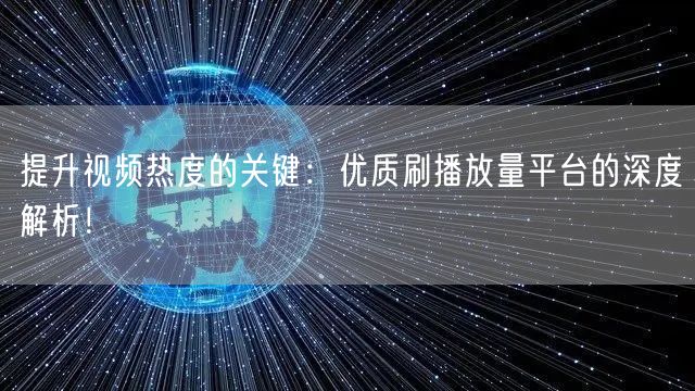本文深度解析了优质刷播放量平台在提升视频热度方面的作用,探讨了其如何助力创作者吸引更多观众。同时,我们还分享了一些关键的播放量增长策略,希望能够帮助视频创作者更好地提升视频热度,实现更大的成功。