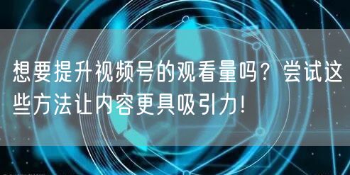 随着互联网的普及和社交媒体的飞速发展,越来越多的人开始投身于视频创作领域。无论是分享生活点滴还是展示专业技能,视频号已经成为人们表达自我和互动交流的重要平台。然而,如何提升视频号的观看量,让内容更具吸引力,成为了许多视频创作者关注的焦点。接下来,我们将分享一些实用的方法和技巧,帮助你提升视频号的观看量!