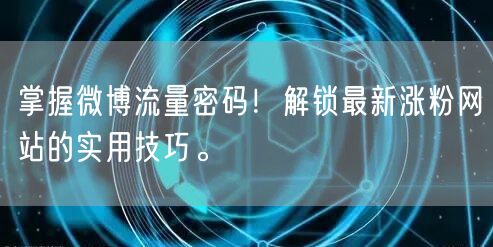 随着社交媒体的快速发展,微博已成为人们获取信息、交流互动的重要平台。掌握微博流量密码,对于个人品牌宣传、企业营销推广都具有重要意义。本文将为您揭示微博流量密码的奥秘,并分享最新涨粉网站的实用技巧。