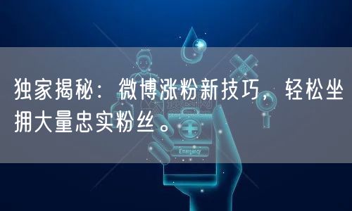随着社交媒体的普及,微博已经成为人们获取信息、交流互动的重要平台。在这个平台上,拥有大量的忠实粉丝意味着更高的影响力和话语权。本文将为你独家揭秘微博涨粉的新技巧,帮助你轻松坐拥大量忠实粉丝。
