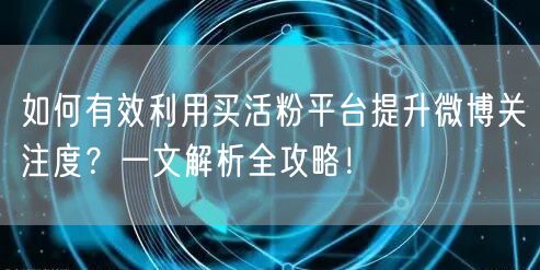 随着微博的普及,越来越多的个人和企业希望通过微博获取关注度和影响力。而买活粉平台作为一种快速提升粉丝量的方式,受到了广泛关注。本文将为您详细解析如何利用买活粉平台有效提升自己的微博关注度。