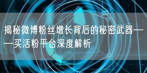 微博作为当下热门的社交平台之一,拥有庞大的用户群体和影响力。对于个人或企业而言,微博粉丝的数量在一定程度上代表了其影响力和知名度。因此,如何快速增长微博粉丝成为了许多人关注的焦点。其中,买活粉平台作为一种快速增长粉丝的方式,引起了广大用户的关注。本文将深度解析买活粉平台的运作机制,带你揭秘微博粉丝增长背后的秘密武器。