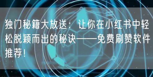 在这个信息爆炸的时代,社交媒体成为了人们展示自我、交流互动的重要平台。小红书作为一个充满活力和创意的社交平台,吸引了众多用户的关注。想要在小红书中脱颖而出,成为众人瞩目的焦点,需要一些独门的秘籍和技巧。本文将为你揭示这些秘诀,并推荐一些免费的刷赞软件,帮助你提升社交影响力。